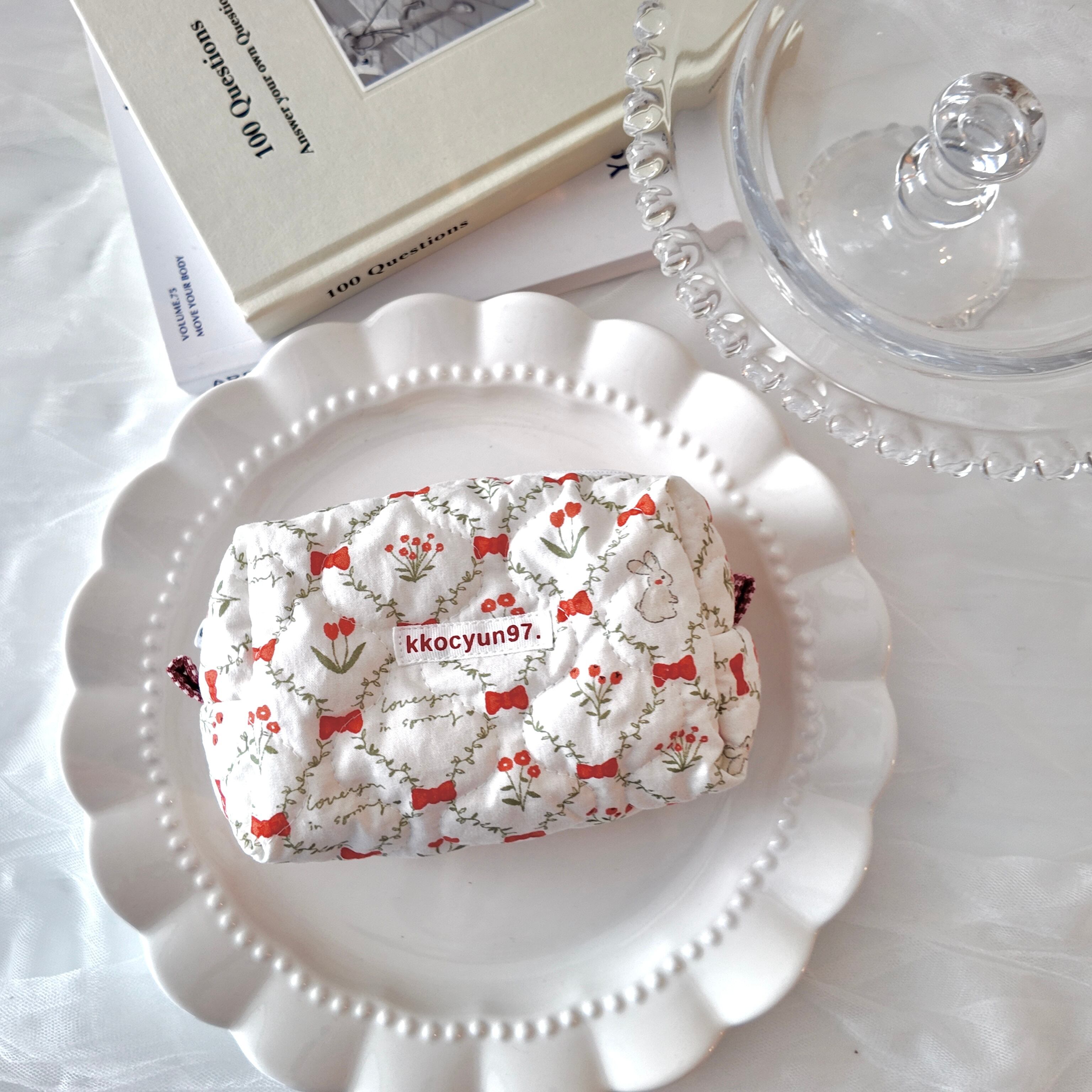 【ボックスポーチ ((赤うさぎ花柄)】